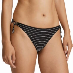 Stilvoller Bikinislip mit Schrägstreifen vorne und einfarbigem Stoff am Po.