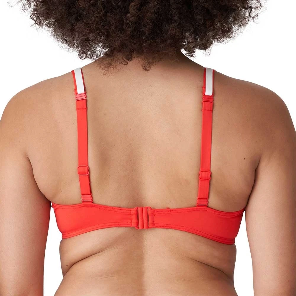 Stilvolles Bikini-Oberteil mit schlichtem grafischem Design, gepolsterten Cups und goldfarbenen Details. Die Träger können gerade oder als Neckholder-Modell getragen werden.