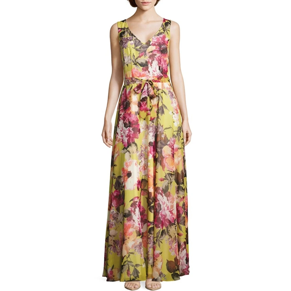 * Passform: Weich fallend * Gesamtlänge: 157 cm * Länge ab Taille: 115 cm * Feinmaterial: Chiffon * Ärmel: Ärmellos * Ausschnitt: V-Ausschnitt * Längeninfo: 1/1 * Verschluss: Reißverschluss * Muster: Floral * Futter: 100% Polyester * Farbe: green/pink