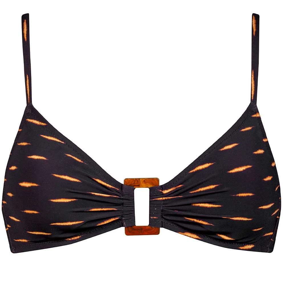 Butterfly-Bralette mit eckiger, brauner Dekor-Schnalle in Retro-Optik am Dekollete. Träger höhenverstellbar. Im Rücken zu binden.